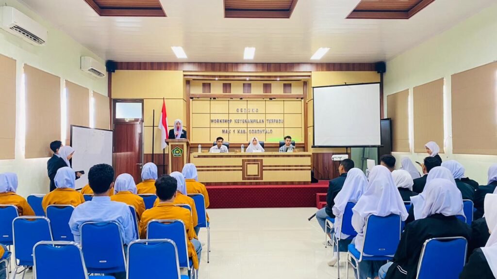 Limboto (man1kabgorontalo.sch.id)- PIK-R INFINITY Madrasah Aliyah Negeri (MAN) 1 Kabupaten Gorontalo (Kabgor) menggelar kegiatan JUMPIR (Jumpa PIK-R) bersama Forum GenRe Provinsi Gorontalo. Kegiatan berlangsung di Aula SBSN MAN 1 Kabgor. Senin (02/02/2026). Acara ini menghadirkan pengurus dan anggota PIK-R INFINITY berjumlah 44 siswa.
